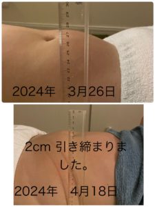 3月末にお越し頂きましたお客様のその後の変化です。 今回はお腹の変化をご覧ください。 すごい変化ですよね。引き続き頑張って行きましょう!